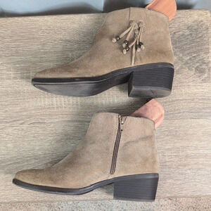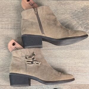 Chic suede ankle booties with side buckle. Perfect for any occasion.