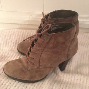 Cold weather is here and White Mountain's leather lace up booties are perfect for all your winter outfits! Tan suede outsole with a 3.5 inch heel.