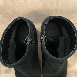 Black Suede Leather Uppers Block Heels With Side Zipper