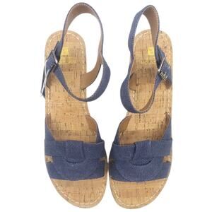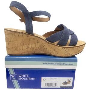 White Mountain Women's Denim Blue Platform Wedge Sandals Size 10