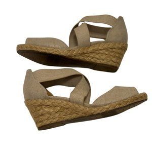 White Mountain Womens Hudlin Espadrille Wedge Sandals Gold Mettallic Straps Sz 8