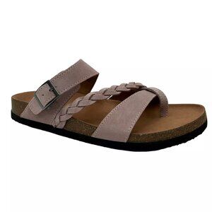White Mountain Womens Leather Slide Sandals Size 9 Light Lavender Toe Loop Style