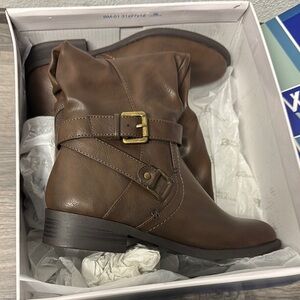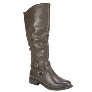 Walk down the streets in style wearing the White Mountain Liona Tall Knee High Boot. This tall boot is detailed with studs and crisscross. The stretch goring in the back ensures a comfortable fit while the full zipper closure offers easy on and off. Features and Benefits Studded detail Crisscross straps Stretch goring in back Buckle at the ankle Full zipper closure.