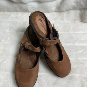 White Mountain brown leather clogs with 2”heels adjustable strap size 8.5M pre owned in good used condition normal wear see all pictures any questions please message.