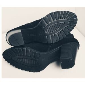 White Mountain-Black Slouch Taft Zipper Leather Suede Ankle Boots --