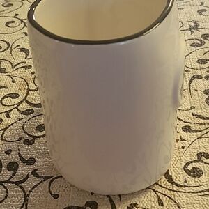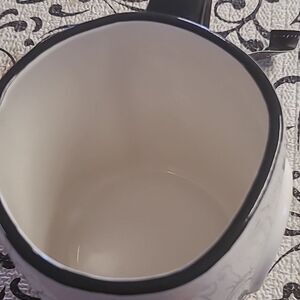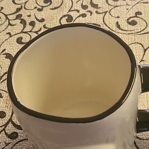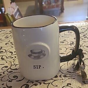 Charming white mug with a black handle and a decorative bow. Features a 'SIP' design.From the Artisan Collection. I have two.
