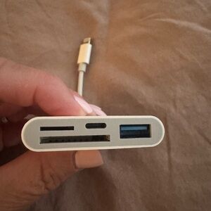 This versatile white multi-port adapter is perfect for connecting various devices. Its sleek design ensures easy portability and efficient functionality.