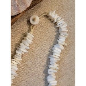 White Natural Clam Shell Bead Collar Necklace Hawaiian