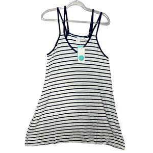 Koy White Navy Stripe Dress Strappy Nautical Swim Beach Resort Coastal Preppy M L
