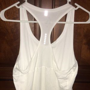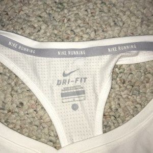 White Nike Running Dri- Fit Razor Back Tank Top. Size - Large. Very Soft. The last picture is of the side of the tank top. There are some flaws they could possibly be fixed but I don’t want to try and mess it up.