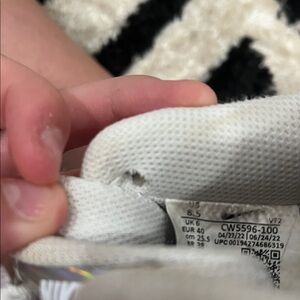 White and iridescent Nike shoes women’s size 8 1/2 in great condition only worn a few times great every day shoes little scuff on the front of the shoe but would probably wash off