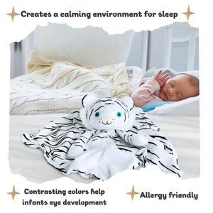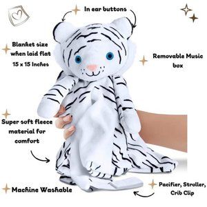🧿 EASY TO OPERATE: Meet Delly the White Tiger - Our baby sleep soothers allows your child to play with the stuffed animal and then gently drift off to sleep with the built-in sound machine. It's incredibly easy to use: Simply press the in-ear buttons to trigger the sound choices of white noise mixed with a heartbeat or a lullaby. On the back of the sound device, you can choose from two volume levels and two lengths: 20 minutes or 40 minutes.