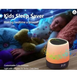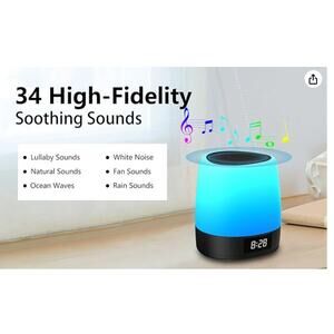 White NoiseMachine 34 Sounds 8 Colors Battery Powered Alarm Clock Bluetooth