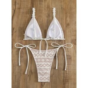 Frankies Sexy Hawaiian Vacation set top bottom white y2k thong high waisted string competition crochet abercrombie fitch pushup bydee