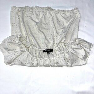 Brand: Stunn’d Size:S Neckline: Off Shoulder Sleeve Length: Short Sleeves Accents: Elastic band Condition: Excellent Color: White
