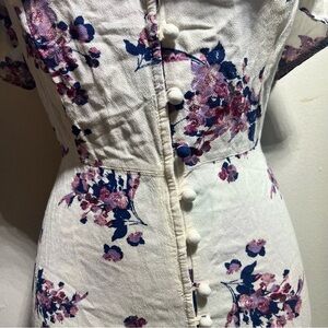 White Off Shoulder Purple Blue Floral Button Front Dress