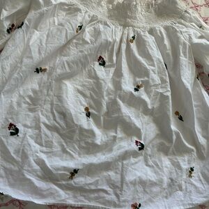 Chic white off-shoulder blouse with colorful floral embroidery. Perfect for casual outings. Size XS