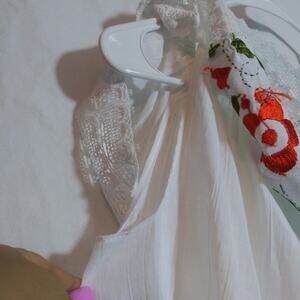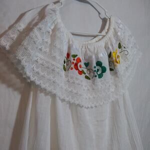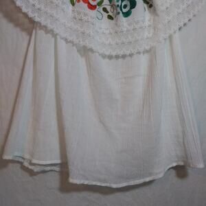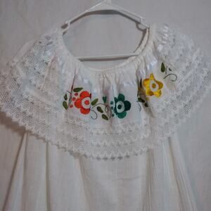 White Off-Shoulder Retro Top with Floral Embroidery Cotton Boho Size L