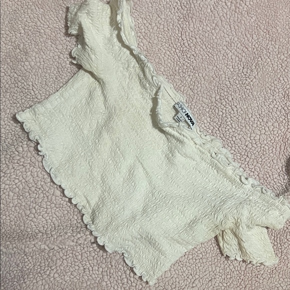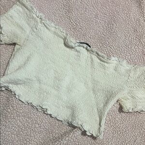 Chic white off-shoulder top with ruffle details. Perfect for casual outings.