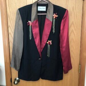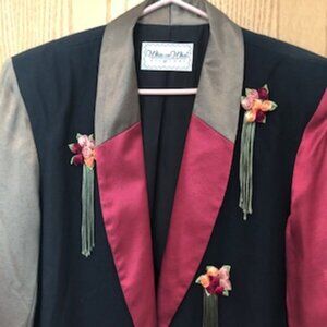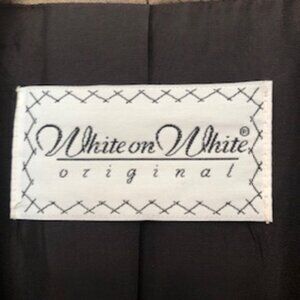 No tags on this fabulous jacket, but I do remember buying it in Hawaii in the late 1980s. I believe the lapels are silk. The condition is perfect. Measures 21 inches pit to pit and is 30 inches shoulder to hem. A White on White original. Something you likely won't see anyone else wearing.