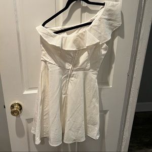 White One Shoulder Ruffle Mini Dress