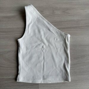 White One-Shoulder Ribbed Tank Top