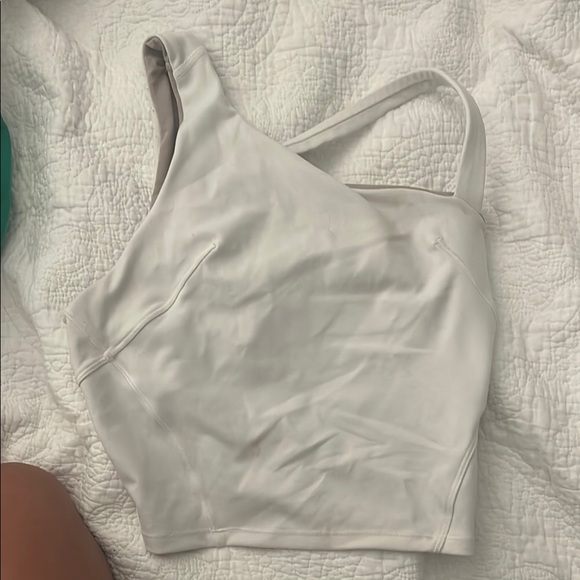 Stylish white one-shoulder top. Perfect for casual outings. Lululemon