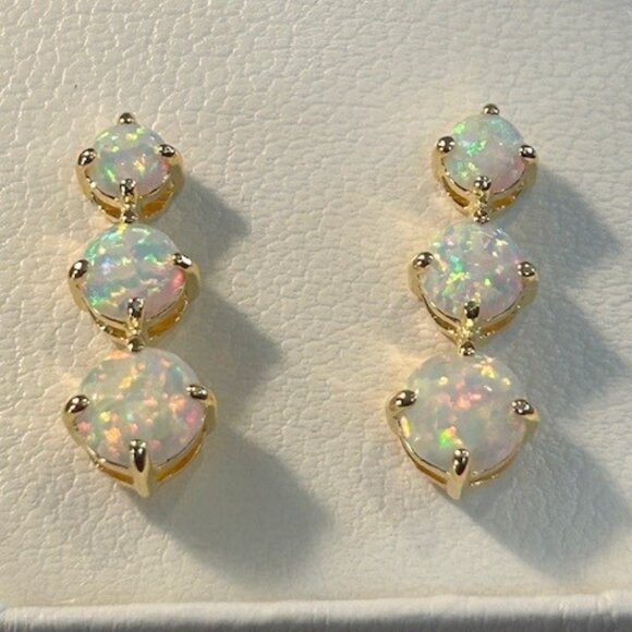 White Opal Past, Present, Future Earrings - Lab Created marked PAJ and 92.5
