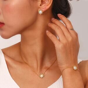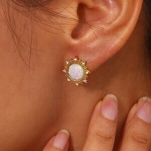 White Opal Sun Stud Earrings 18K Gold Plated Stainless Steel