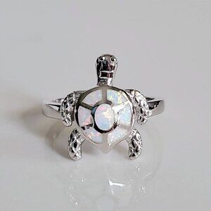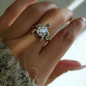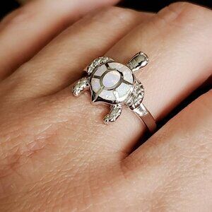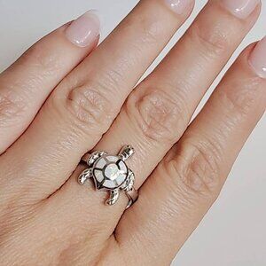 White Opal Turtle Ring, Sterling Silver Women Ring, 925 Stamped, Ocean Ring,