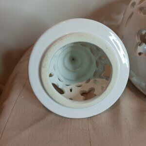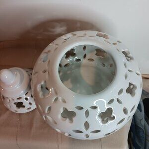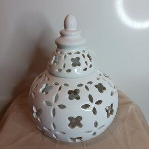 Beautiful Decor for any home. Ceramic Temple Jar is in excellent condition. Beautiful design open work. 9 1/2" x 7"
