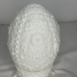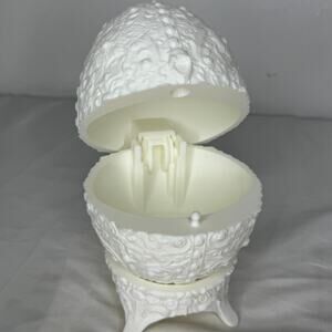 White Ornate Faberge Elagent Style Egg Jewelry Trinket Box Hinged Plastic