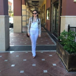 White denim flare overalls. Only worn once and in new condition. Stretchy fabric for extra comfort. Side zip and clasp. Front pockets. More photos coming soon.