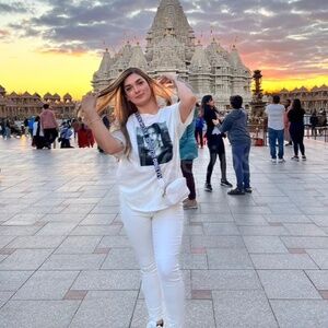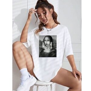 White Oversized Tee Crewneck Short Sleeve Printed Appliqué Modern Mona Lisa