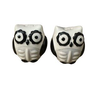 White Owl Salt and Pepper Shakers Small Country Decor White Black