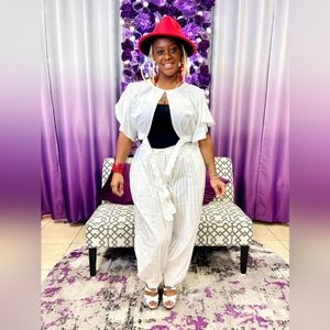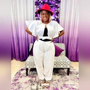 Women long wide leg pleated palazzo pant. Has elastic waist with adjustable waistband. Has side pockets. Long length 42in