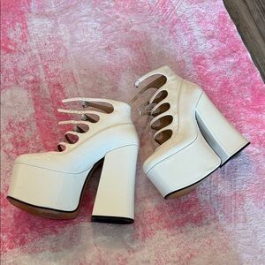 Step out in style with these chic white patent leather ankle boots. Perfect for making a bold fashion statement.