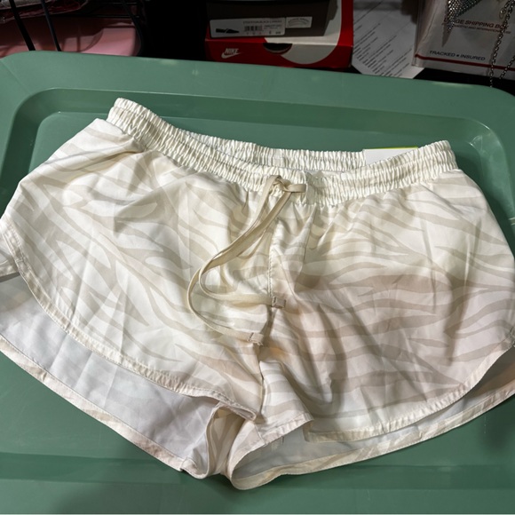 Stylish white shorts with a subtle pattern. Features a comfortable drawstring waist.