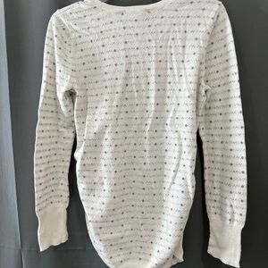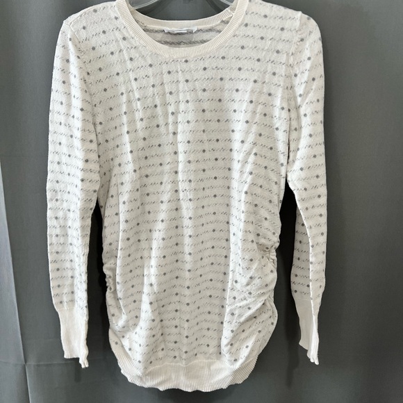 Cozy white sweatshirt with subtle dot pattern. Ideal for casual wear. Soft and stretchy material.