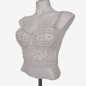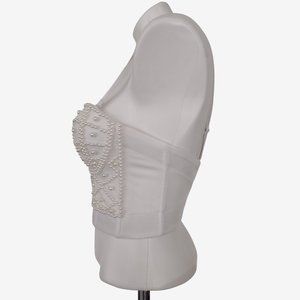 White Pearl Beaded Convertible Corset Bustier Crop Top