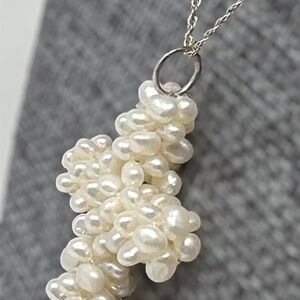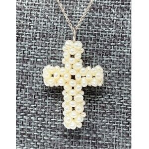 White Pearl Cluster Cross 4mm Cultured Freshwater Pearls & Sterling Silver Chain