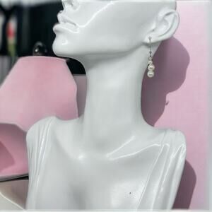 White Pearl Drop Earrings Antique Bronze Hook Three Bead Dangle Classic Design