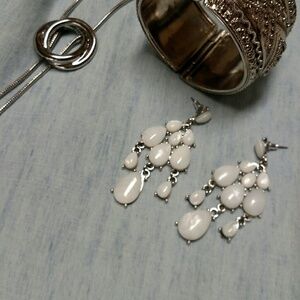 White Pearl Essence Dangle Earrings on Silver. Post back. 2 1/2 inch drop