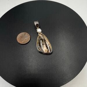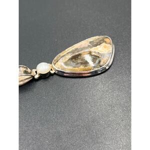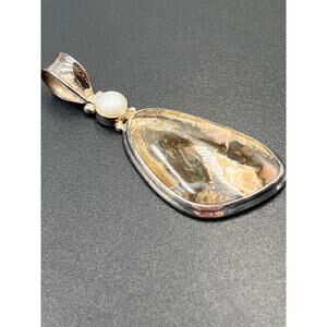White Pearl, Petrified Wood, Fossil, Wood Agate and Sterling Silver Pendant
