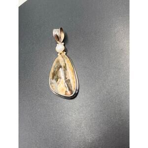 White Pearl Petrified Fossil Wood Agate Sterling Silver Peace Stone Pendant