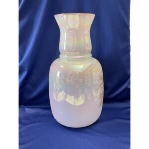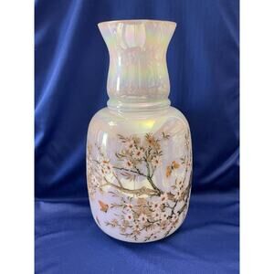 White pearlized porcelain vase with hand painted blossoms and butterflies