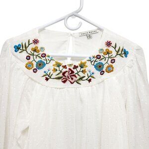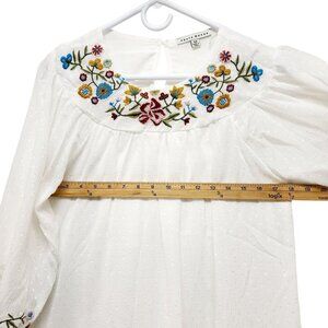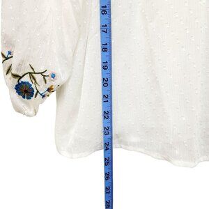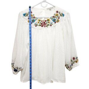 White Peasant Blouse With Floral Embroidery & 3/4 Sleeves By Haute Monde Size M