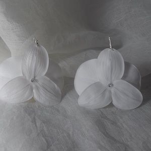 White Phalaenopsis Orchid True Touch Artificial Earrings. Earring claps are solid 925 Sterling Silver 20mm. The earrings are lightweight and comfortable to wear. The earring hook claps securely preventing loss, keeping earring securely in place.