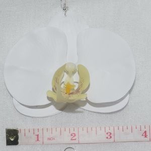 White Phalaenopsis Orchid True Touch Artificial Earrings. Earring claps are solid 925 Sterling Silver 20mm. The earrings are lightweight and comfortable to wear. The earring hook claps securely preventing loss, keeping earring securely in place.