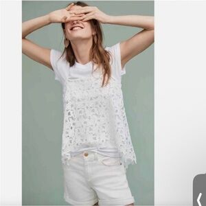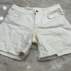 Pilcro & The Letterpress Script Micro Jean Shorts – Size 27 (US 4). Stay cool and stylish in these crisp white mid-rise denim shorts from Anthropologie. Flattering tailored fit with a clean, classic look—perfect for summer, beach days, or weekend wear. Easy to pair with tanks, tees, or flowy blouses. Excellent preowned condition – no stains, rips, or signs of wear.